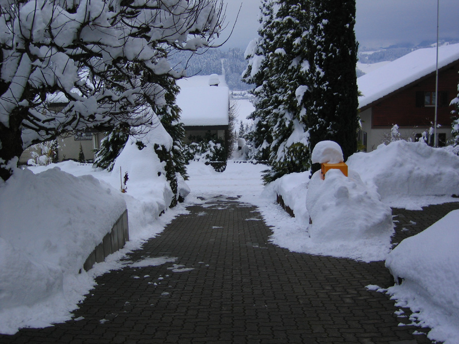 Schneeakkumulation neben der Auffahrt Donnerstag 18.12.2008