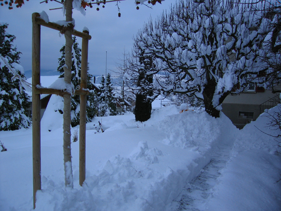 Schneise im Schnee wähnt einen in einem Wintersportort