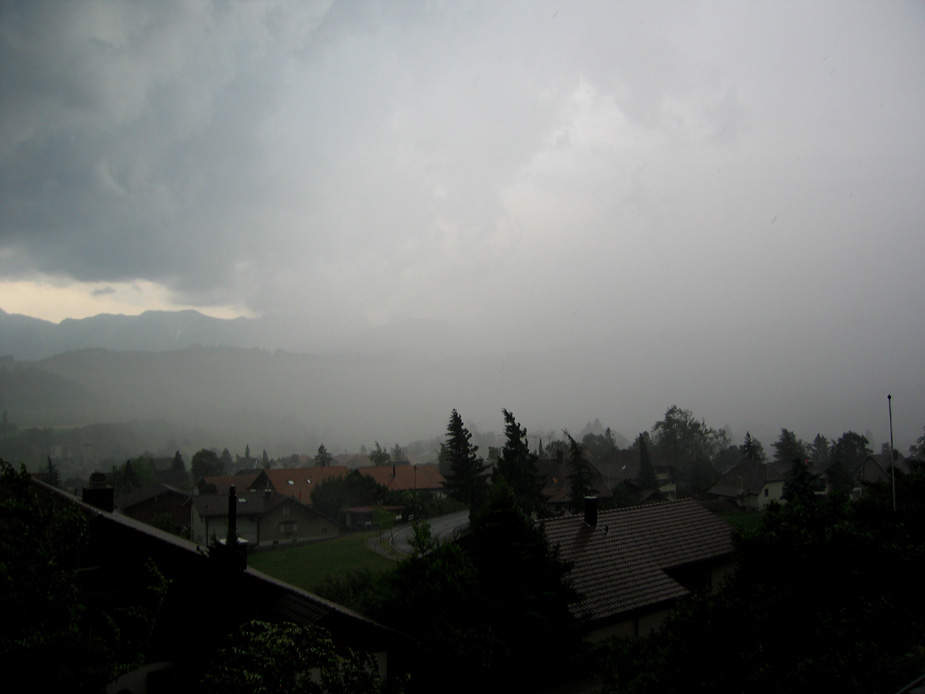 starker Downdraft kurz vor dem Hagelschlag, welcher bereits hörbar ist
