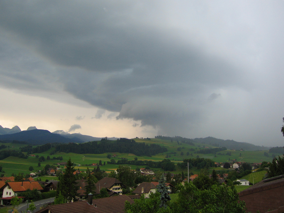 eindrückliche Wallcloud einer "Mini-Superzelle" am Abend des 5. Julis 2009