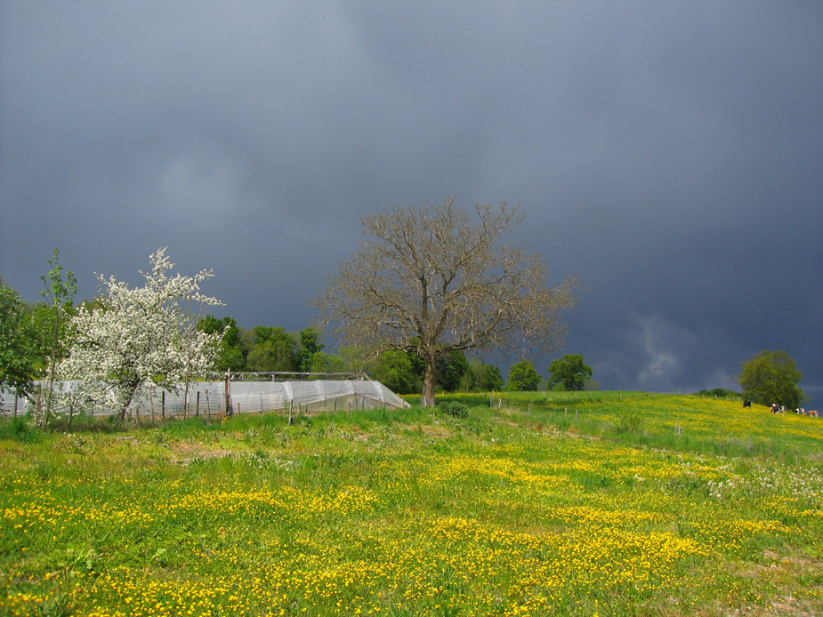 blühende Vegetation bei Gewitterstimmung im Frühling 2008