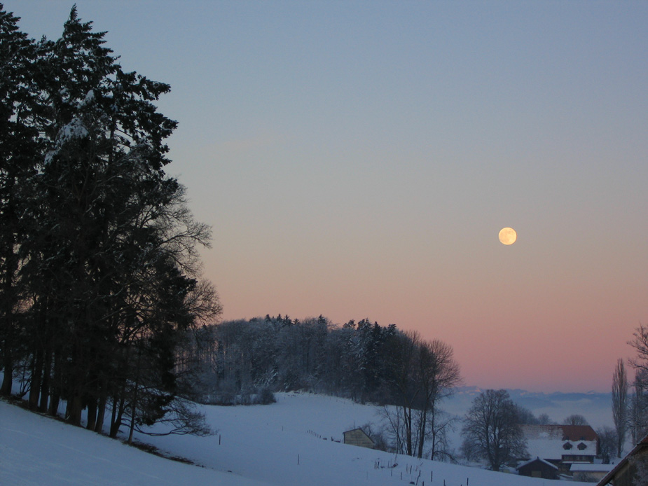 Aufgang des Vollmonds über der Winterlandschaft am 10. Januar 2009